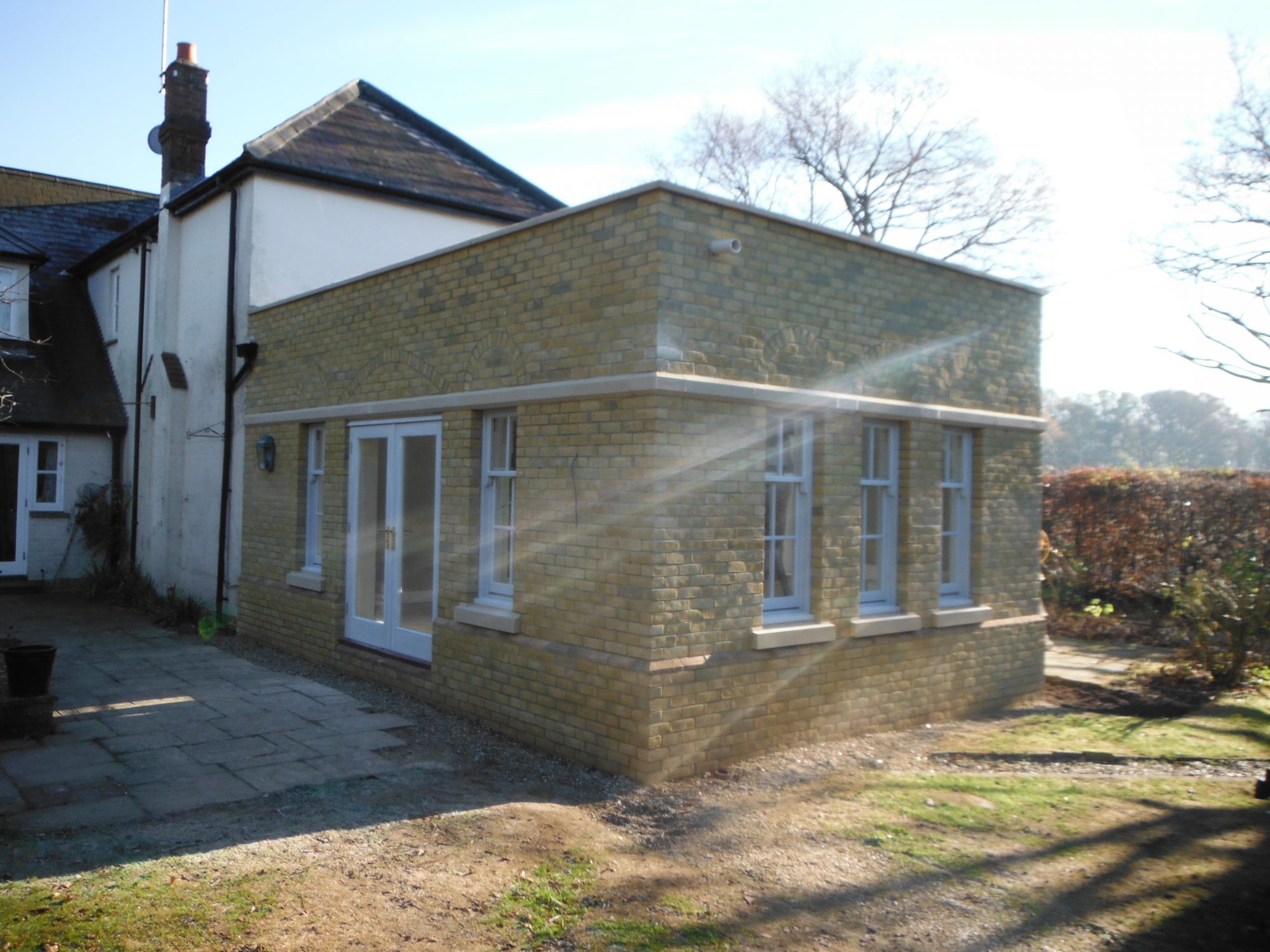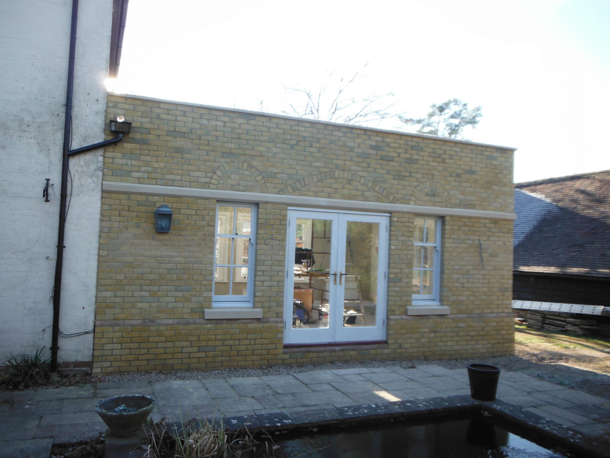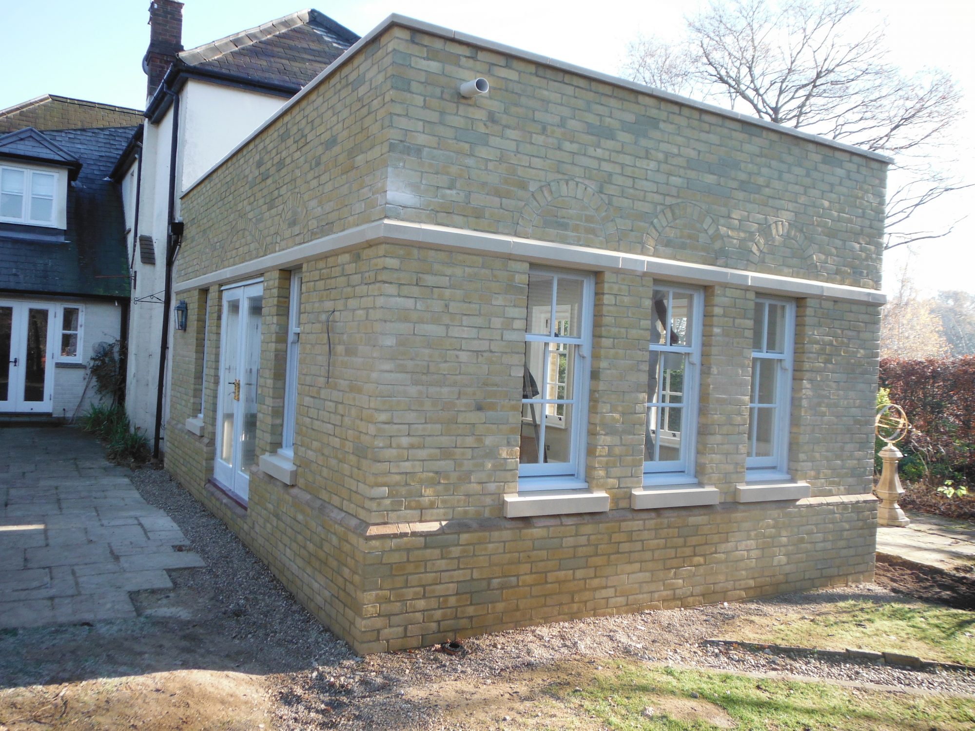 The project started with the removal and disposal of the existing conservatory. Building work then commenced on its replacement, a stylish orangery featuring timber box sash windows. The orangery also featured sandstone sills and detailing as well as a large traditional lantern.
