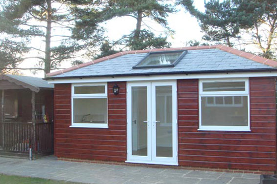 Purpose built, timber framed and cladded summer house. The roof is tiled in hard wearing grey slate and includes a flush fitting roof light. The summer house is supplied with mains electricity, water and drainage. All windows and the roof light are double glazed. The walls and roof are fully insulated making it eco-efficient and comfortable to use summer or winter alike.